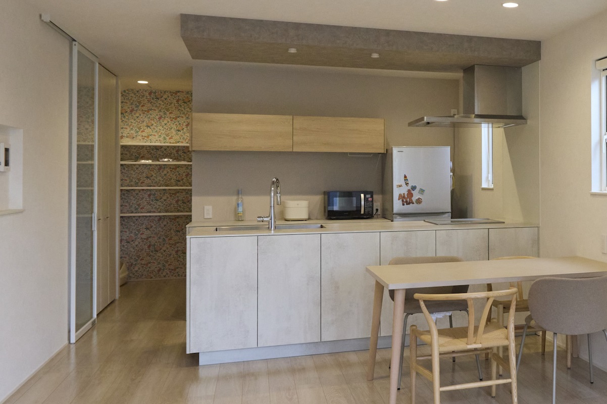 また、愛猫が共に暮らす2階では、扉付きのパントリースペースを拡大。食品のパッケージなどが傷つけられることがないように気遣われています。